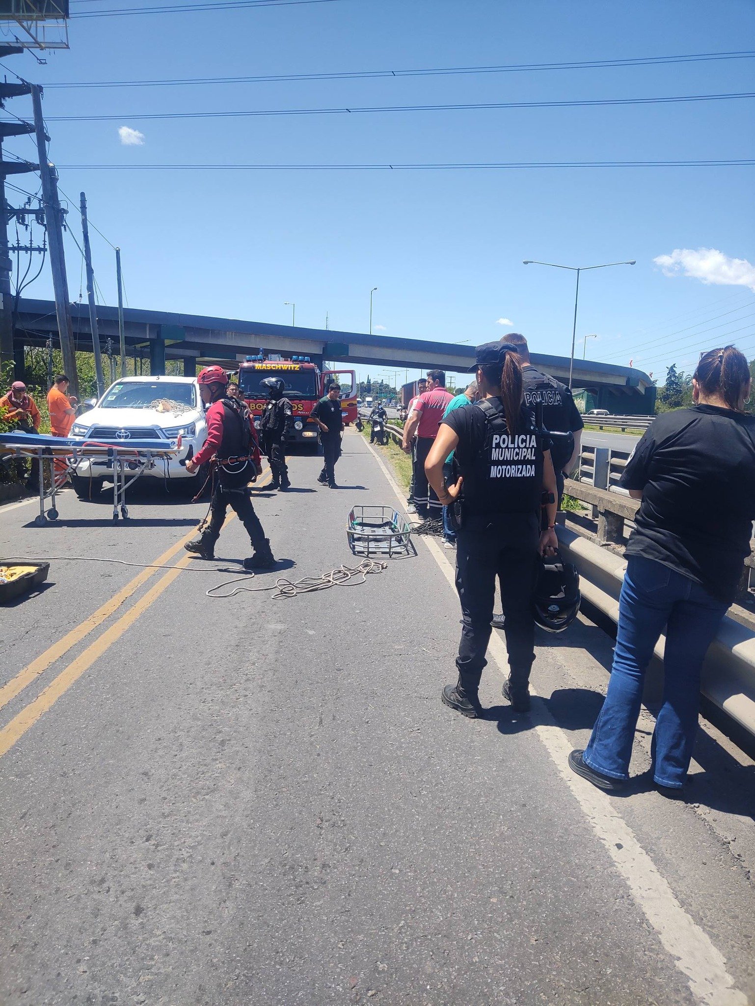 Un trabajador de  Autopista del Sol que realizaba tareas en Colectora Este de Panamericana a la altura de Arroyo Escobar sufrió una caída al vacio mientras realizaba tareas de corte de pasto.