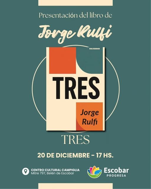 A la misma hora, en el Centro Cultural Campiglia (Mitre 797, Belén de Escobar) se realizará la presentación del libro “Tres” de Jorge Rulfi. Más tarde, desde las 19:30 horas en la Parroquia Natividad del Señor (Av. Tapia de Cruz 524, Belén de Escobar), se llevará adelante la tradicional Santa Misa, el pesebre viviente y una cantata navideña a cargo de músicos locales y el Ballet de Jesús.