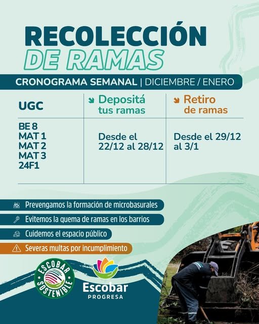 Escobar a Diario aprovecha la oportunidad para compartir el cronograma de levantamiento de ramas en dicho barrio parque:
