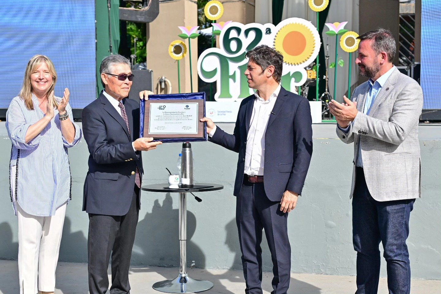 “Quiero agradecer al gobernador por venir a Escobar de nuevo y por acompañarnos durante toda nuestra gestión. En medio de crisis económicas, durante la pandemia, con ajustes brutales como los que vivimos actualmente, el Gobierno de la Provincia de Buenos Aires siempre nos apoyó y nos escuchó para trabajar codo a codo en mejorar la calidad de vida de nuestros vecinos y vecinas, a quienes les digo feliz aniversario y que disfruten de esta nueva edición del evento que nos representa como pueblo”, expresó Sujarchuk, acompañado por el presidente de la Sociedad Civil Fiesta de la Flor, Tetsuya Hirose.
