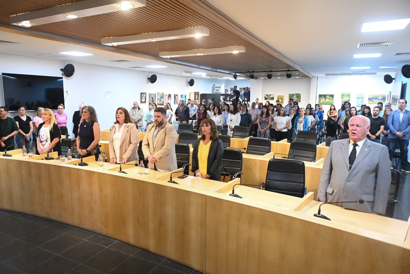 «La emoción es inevitable, porque el compromiso que tenemos quienes estamos integrando este cuerpo es muy grande, sobre todo por los vecinos y vecinas. En mi caso, tengo que agradecer enormemente a nuestro intendente, a nuestro querido intendente Ariel Sujarchuk … Primero integramos estas vistas y luego podemos ocupar estos lugares. Y digo bien: «ocupar», porque lo hacemos con la convicción de que no estamos defendiendo los lugares en los que nos sentamos, sino que los estamos ocupando. Y hay una diferencia en eso, porque en primer lugar sabemos que no son nuestros, que son circunstanciales, que dependen de la voluntad de los vecinos y las vecinas que elección tras elección votan por este modelo de gestión» – señaló Guazzaroni, para luego agregar: