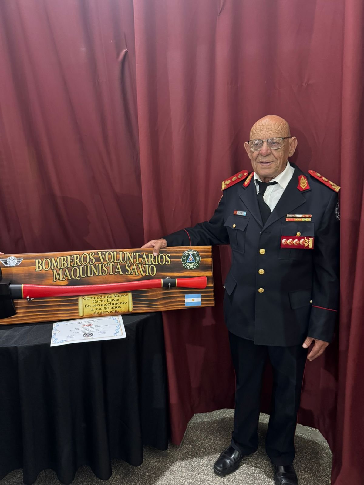 Este sábado por la noche se llevó a cabo un emotivo homenaje destacando la trayectoria del Comandante General Oscar Davis. En el Cuartel de Bomberos de calle  9 de Julio 107, se destacó su carrera de 50 años en el servicio de bomberos, particularmente su impacto transformador en los Bomberos de Maquinista Savio.