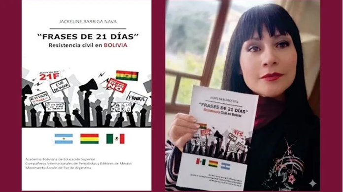 Por otra parte, se dedicó a la parte social y política, escribió un libro titulado «Frases de 21 Días: Resistencia Civil en Bolivia». Cuando presentó su escrito en la Feria del Libro Internacional de Cochabamba fue amenazada por seguidores políticos contrarios al enfoque que utilizó en su libro, ahora es parte de las bibliotecas más importantes del mundo como de las universidades de Princeton, Stanford, Pensilvania y Wisconsin-Madison.