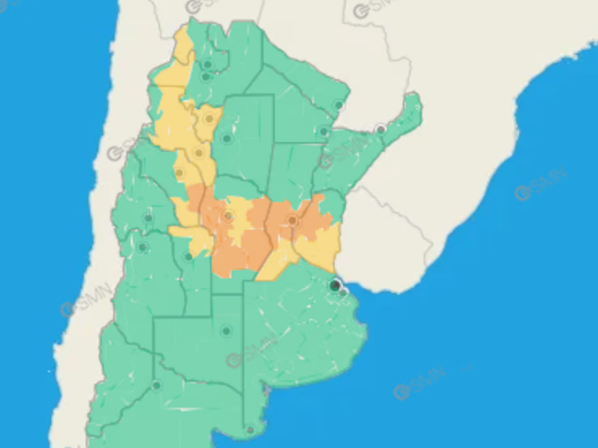 En el caso de las regiones que estarán afectadas por la alerta amarilla por tormentas, las autoridades señalaron que serán el sur de Entre Ríos, el sur de Santa Fe, el centro de Córdoba, el norte de San Luis, el sureste y noreste de La Rioja, gran parte de la provincia de Catamarca, el oeste de Salta y el oeste de Jujuy.