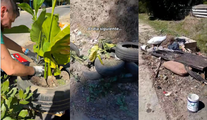 La rápida reaparición del basural expone una problemática que no se resuelve únicamente con la intervención municipal. En esta ocasión, un vecino de la zona, Jorge Olivieri, volvió a limpiar el espacio, ordenó residuos acumulados y armó pequeños canteros con neumáticos reutilizados para mejorar el entorno. Pero el esfuerzo tampoco logró sostenerse: al día siguiente, nuevamente fueron arrojados desechos en el mismo lugar.