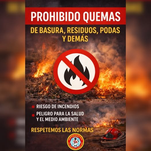 Recordamos una vez más que se encuentra prohibido quemar residuos, ya que estas acciones ponen en peligro vidas, viviendas y el medio ambiente. La prevención y el respeto son responsabilidad de todos.