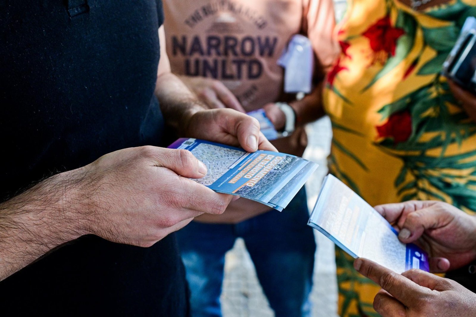 En ese marco, el secretario general Beto Ramil supervisó la señalización instalada y las acciones informativas que se despliegan en la vía pública.