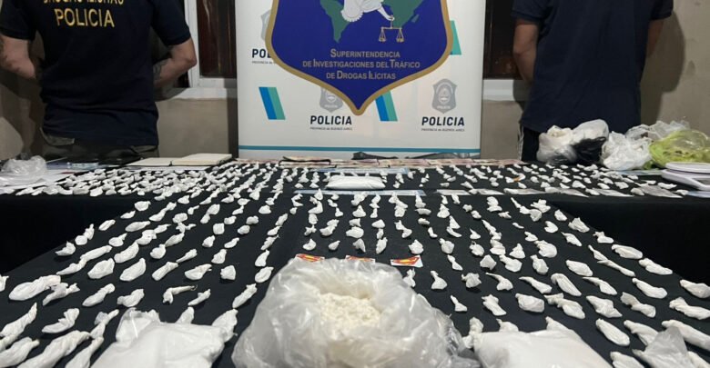 Como resultado del operativo fueron aprehendidos un hombre y una mujer de 32 años de edad mientras que se secuestraron 500 envoltorios de cocaína y bolsas sin fraccionar que suman 1,1 kg. También se incautaron un frasco con cogollos de marihuana, dinero en efectivo, cuatro teléfonos celulares, una balanza de precisión, sustancias de corte y otros elementos utilizados para el fraccionamiento de la droga.